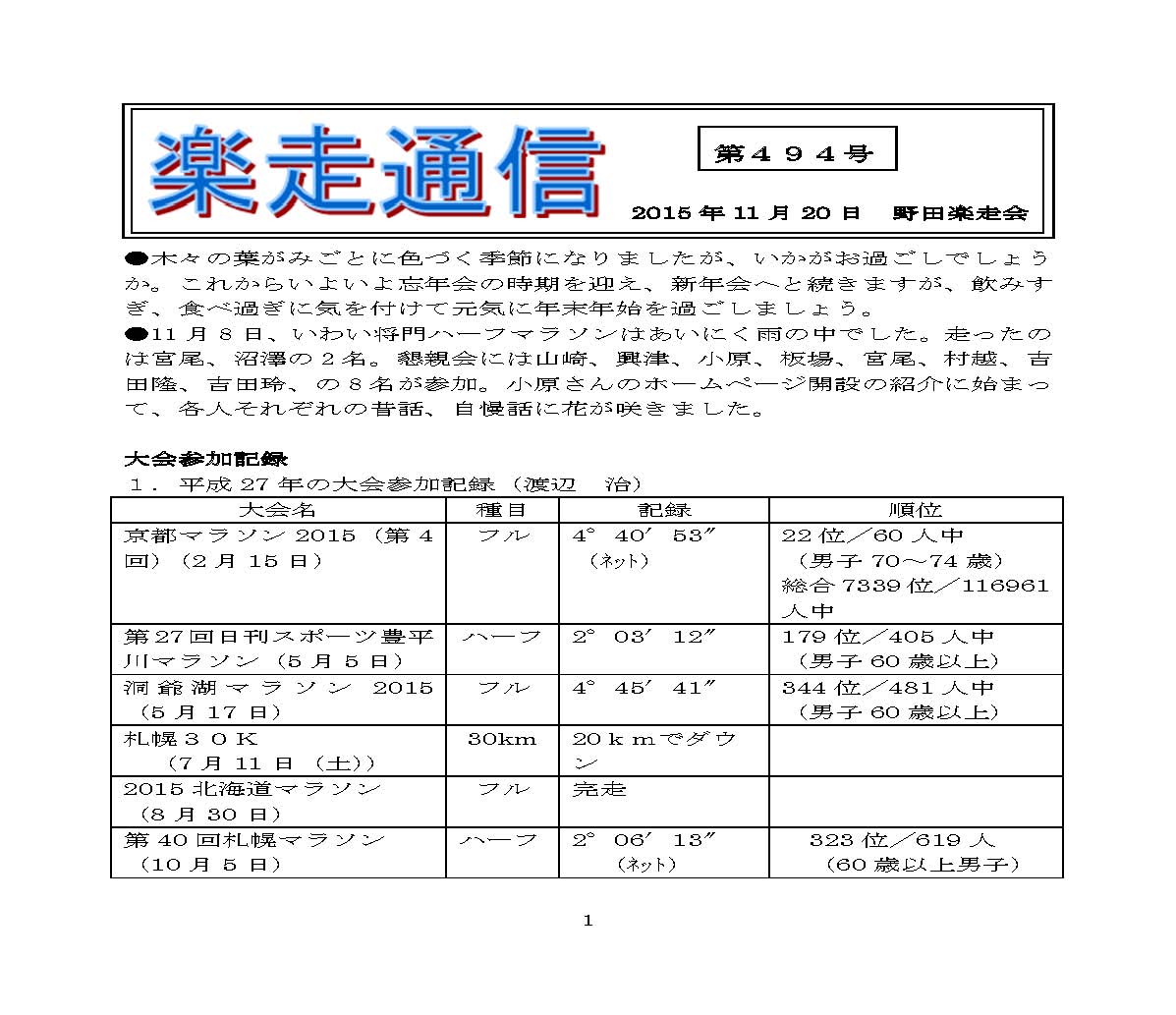 - ■第1号 野田楽走OB会だより(2016年2月29日発行)